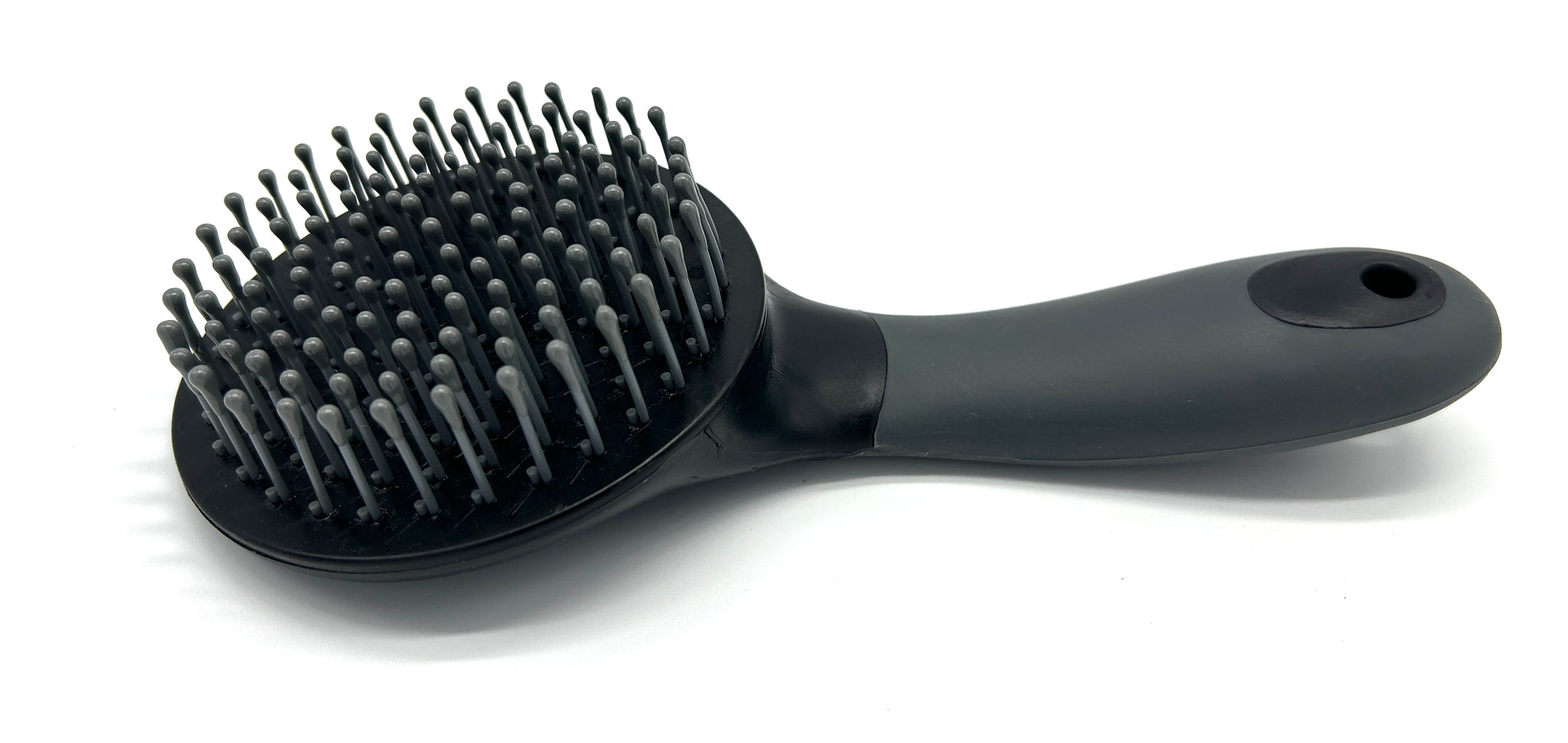 The Soft Grip Mane and Tail Brush by Paradise is a great addition to every grooming box in your barn. This round brush features a curved design with a soft, easy-grip handle that is made for multi-directional brushing for easier use and fewer tangles.